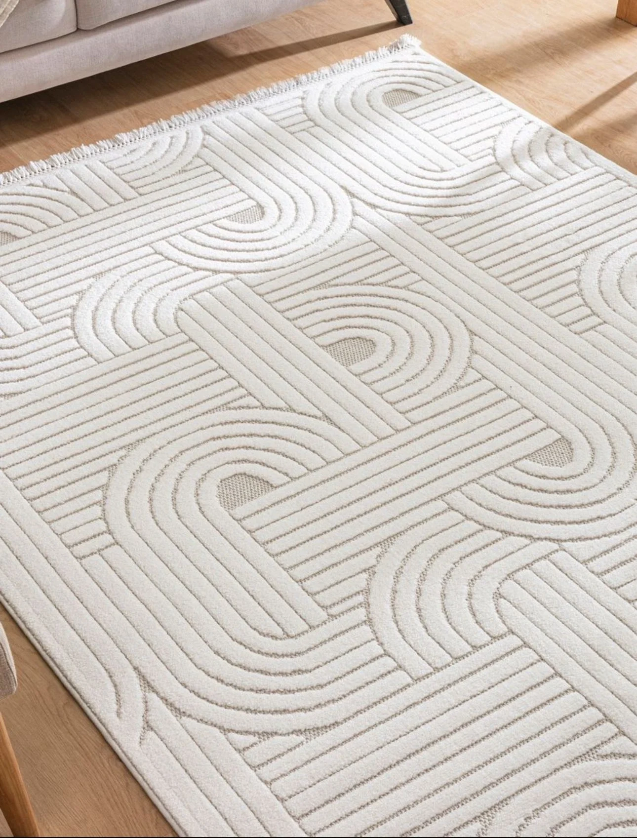 İnce Tüylü Ultra Yumuşak Puffy Peluş Antialerjik Halı Krem