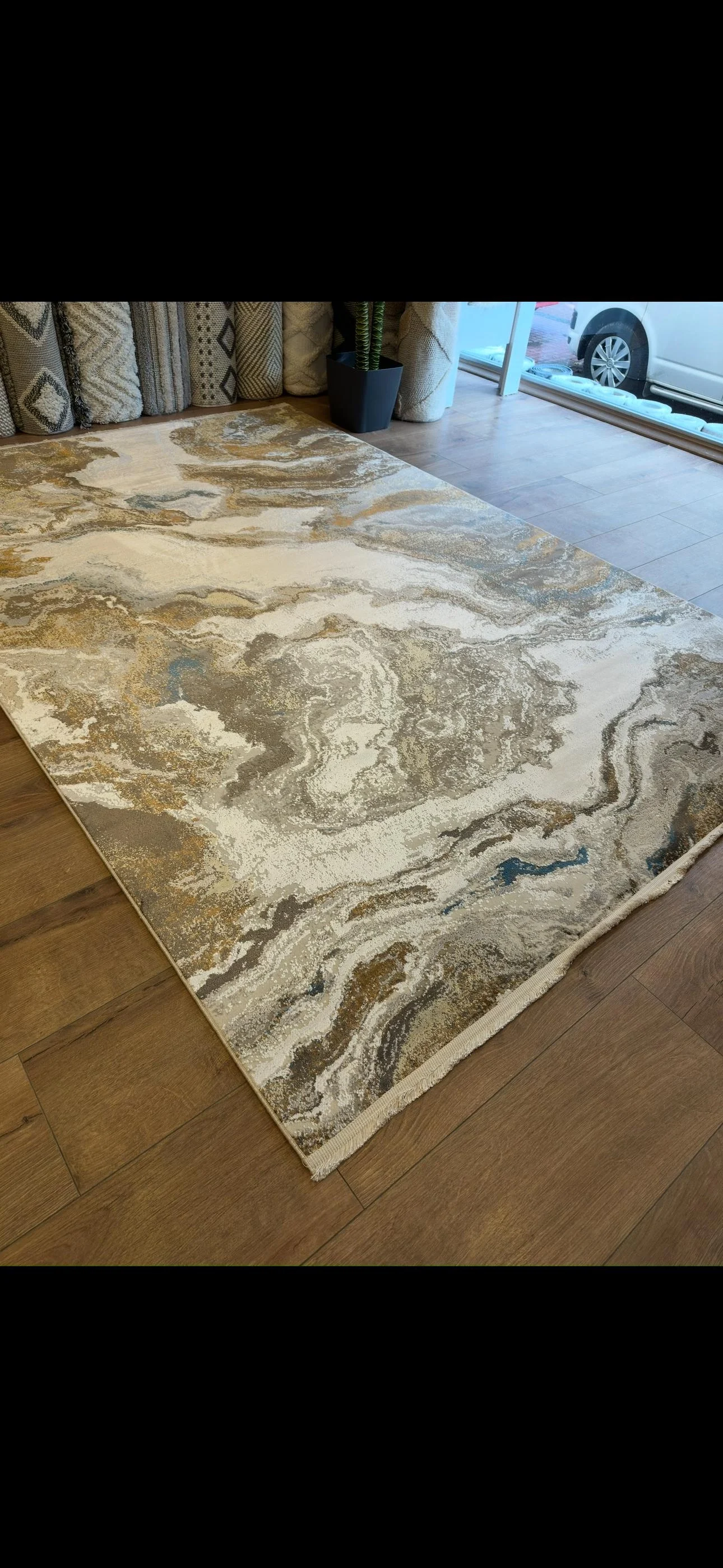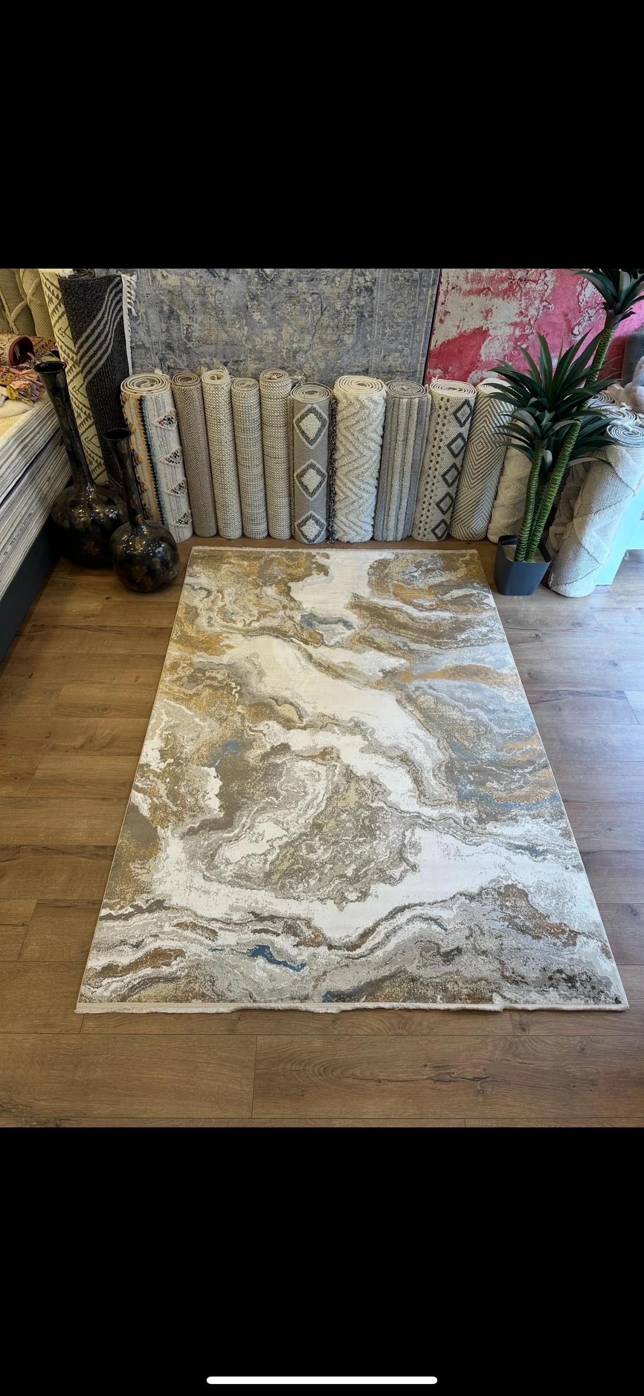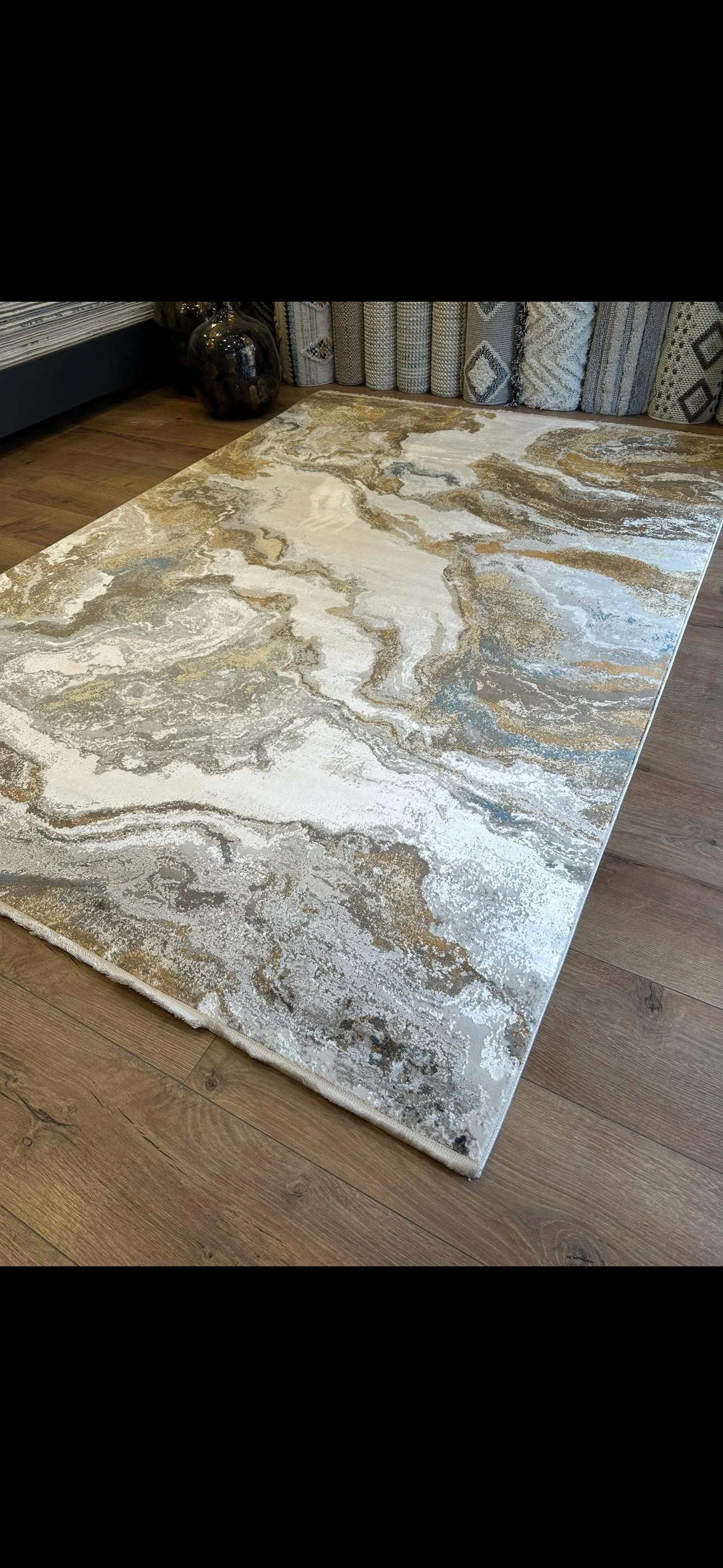 Her ayrıntısı özenle işlenmiş bu halı, hem modern hem de sanatsal dekorasyon anlayışına hitap ediyor.