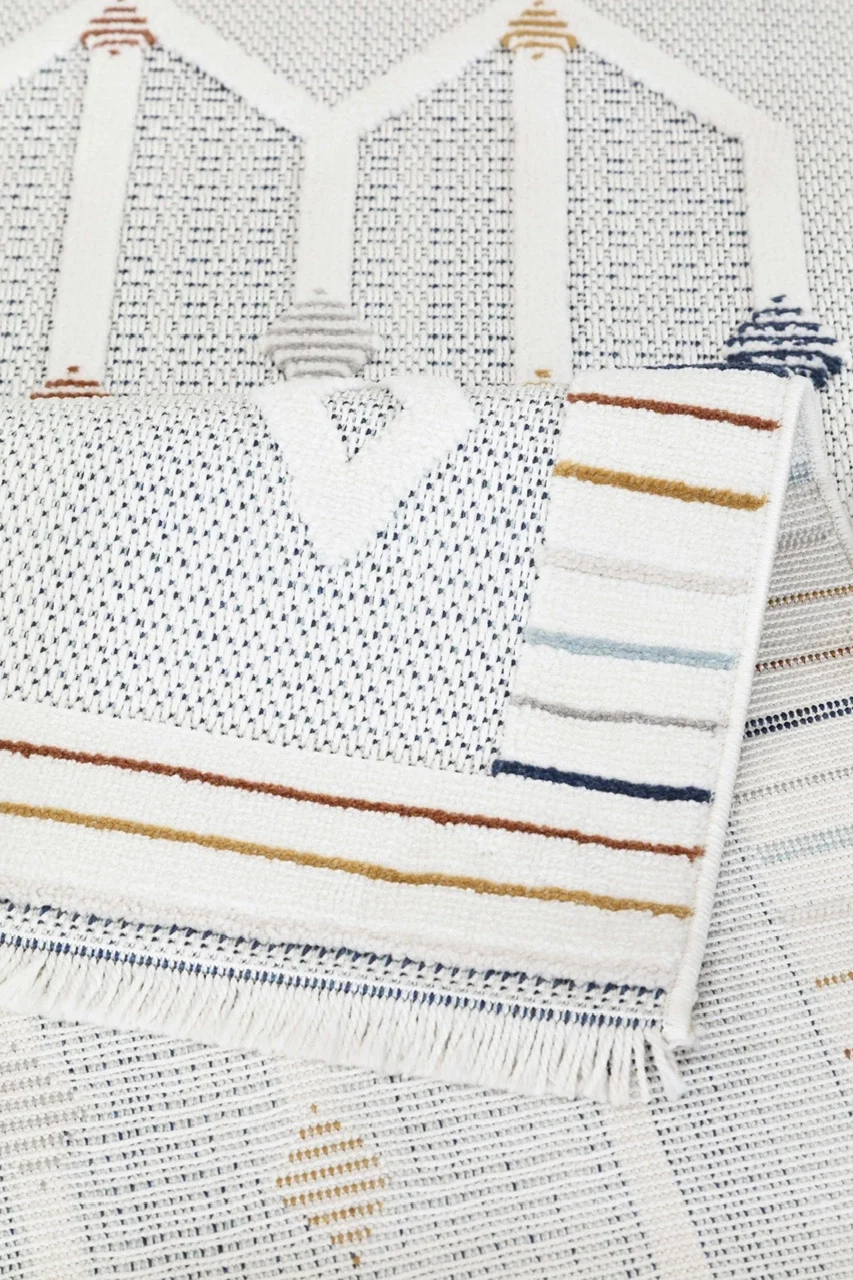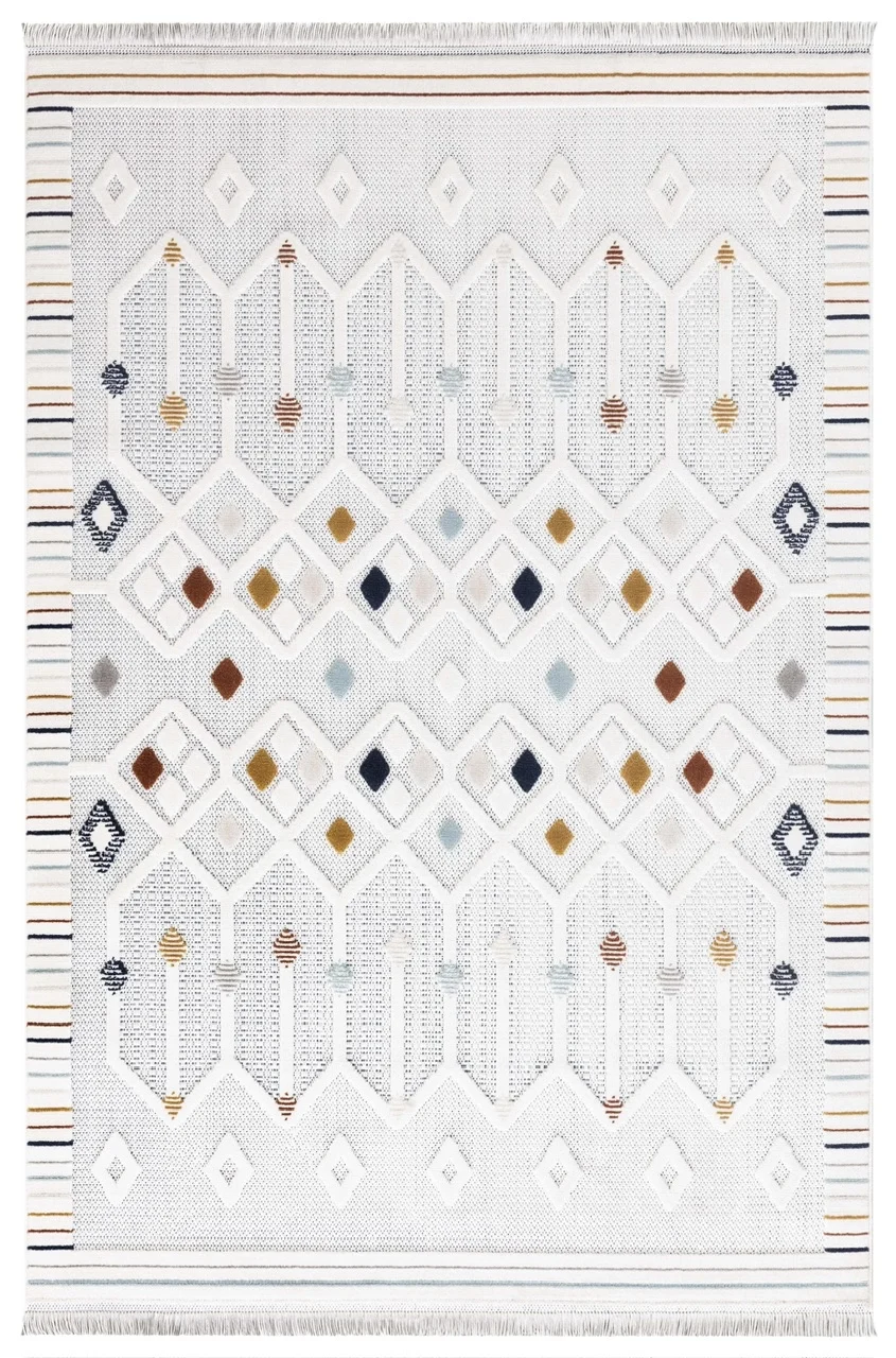 Bu modern ve etnik tasarımlı halı, multi renkli desenleriyle göz alıcı bir görünüm sunar.