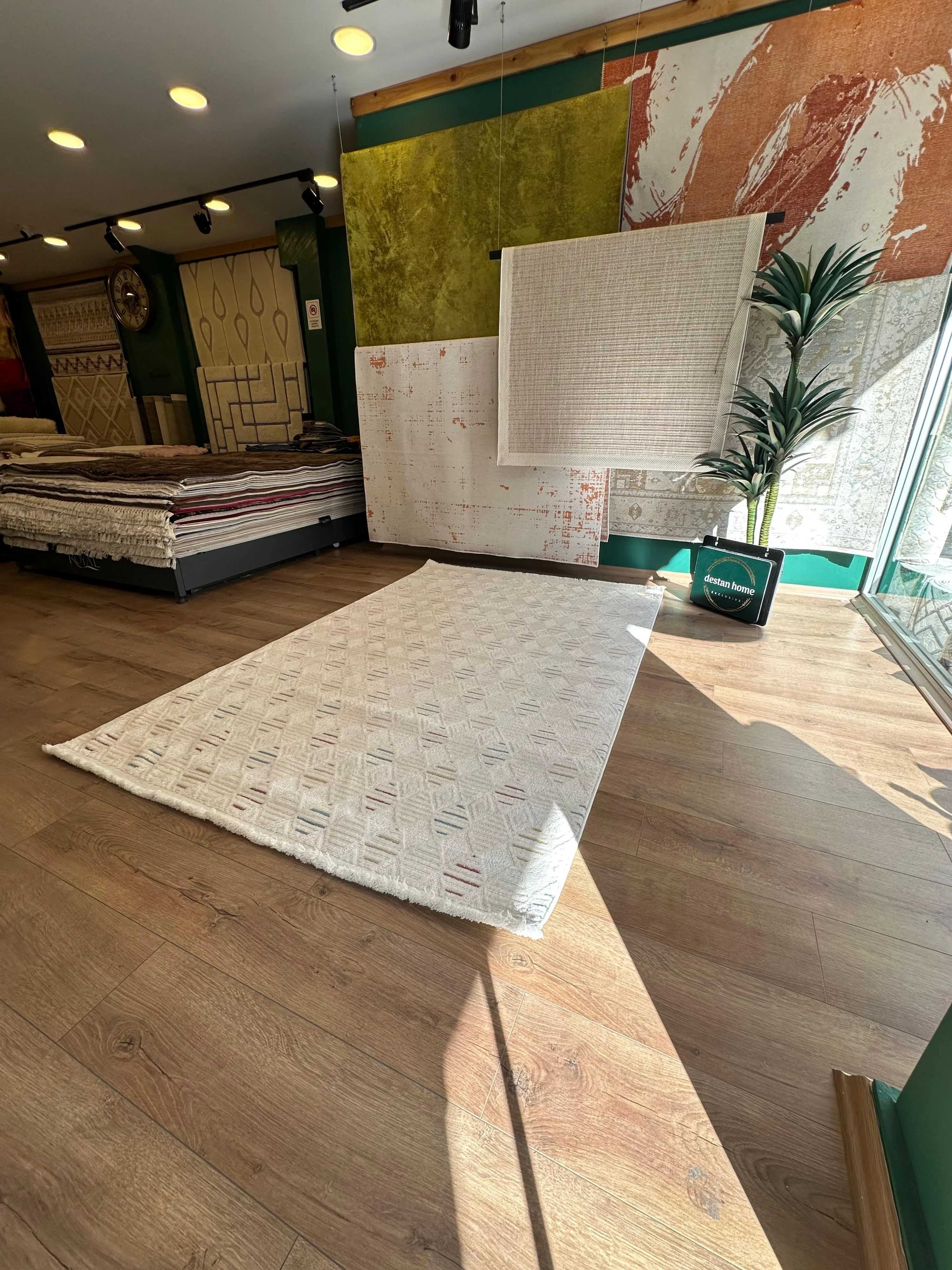 DESTAN HALI  Gloria 5306  Modern İskandinav Hav Toz Vermez Etnik Modern Makine Halısı, sade Iskandinav tarzını sevenlerin tercihi olmaktadır.