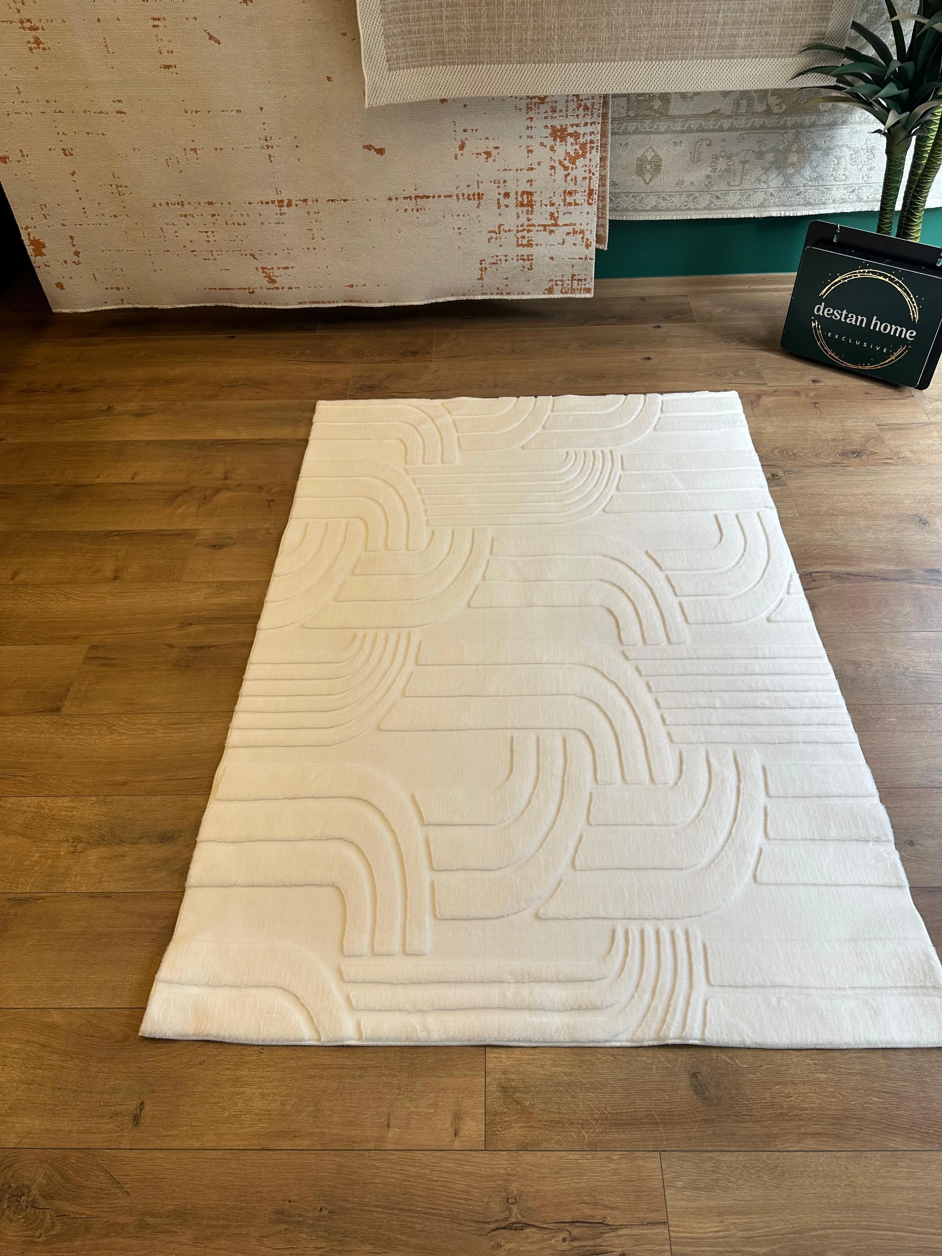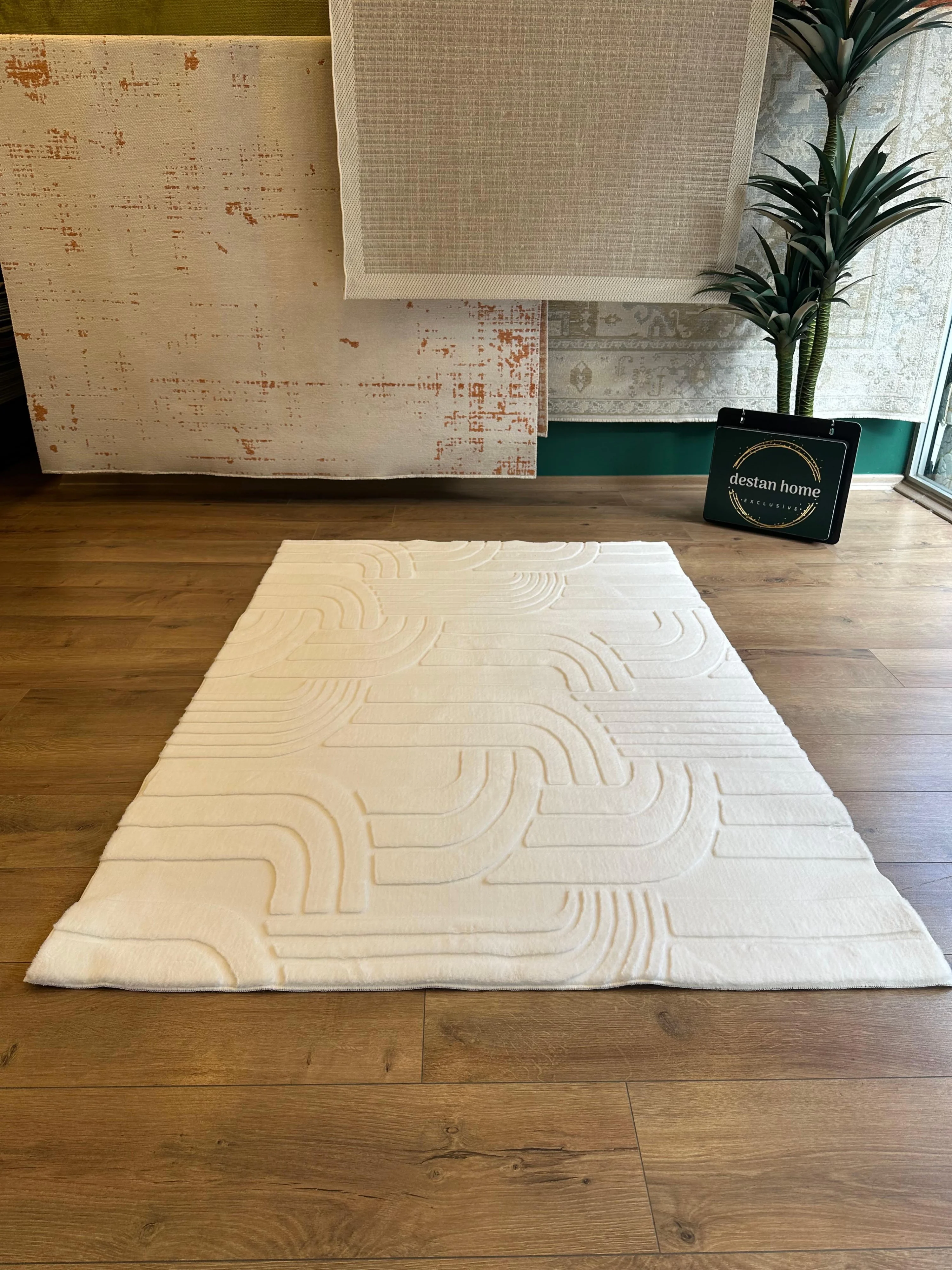 İnce Tüylü Ultra Yumuşak Puffy Peluş Dokuma Antialerjik Halı Beyaz, evinize sıcacık bir hava katmak için ideal bir seçenektir.